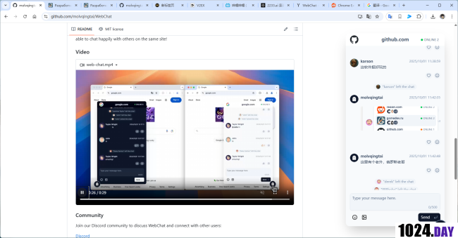 molvqingtai https://github.com/molvqingtai/WebChat 这是一款去中心化、无服务器的匿名聊天浏览器扩展程序,利用 WebRTC 进行端到端加密通信。它优先考虑隐私,所有数据均本地存储。 目的是为任何网站添加聊天室功能,让您不再感到孤独。