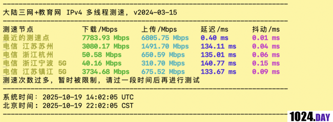 应该是10G口,当然到国内跑不了极限,就当多线程10G口,单线程G口吧。国内speedtest节点的原因,只测出部分电信速率,将就看吧。